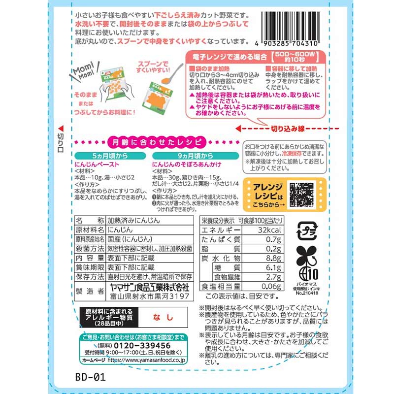離乳食づくりに便利! 小さなお子さまにも食べやすいサイズにカットした下ごしらえ済みの野菜です。 水洗い不要で、開封後そのまま料理にお使いいただけます。