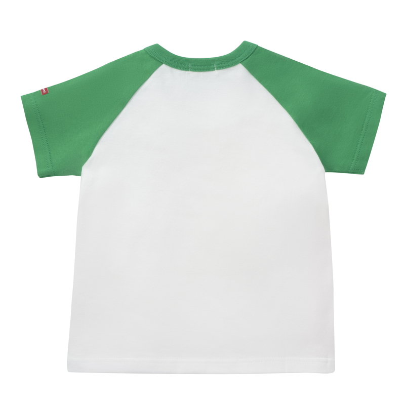 ミキハウスホットビスケッツの半袖Tシャツ。 ビーンズ・キャビットのキャラクターとロゴが前面についたかわいいTシャツです。 キャラクターのアップリケでかわいらしく、 子どもらしい色合いのラグランスリーブがアクセントに! さらっとした肌触りで通気性が良く、汗をしっかりと吸収し 洗濯しても傷みにくく型崩れしにくい丈夫な天竺素材。 ●半袖 ●~90cmまで肩開き仕様