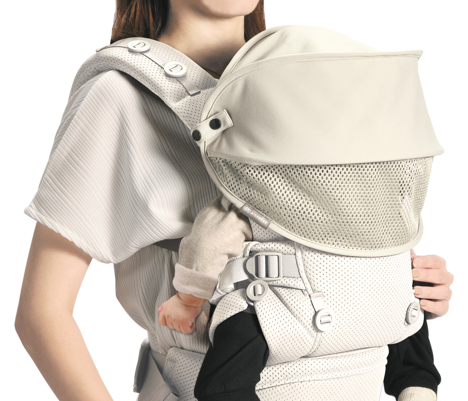 ●材質:[生地]ポリエステル100% [フレーム]ポリアセタール ●製品サイズ:縦約24cm×横約38cm ●洗濯機で丸洗いOK。いつでも清潔に使えます。 ※必ず弱水流または弱い手洗いモード等で洗濯ネットを使用してください。乾燥機は使用できません。 【ご購入前にご確認ください】 ●本品の使用条件 ・ 本品のストラップが、抱っこひもの肩ストラップに取り付けできること。 ・ストラップの巻き付け部分の長さは約13~16cmです。 ●推奨する身長の目安:約70cmまで ・お子さまの身長が70cm を超えると、本品が頭部に接触したり、開閉作業の妨げになる場合があり、製品本来の性能を充分に発揮できないことがあります。 ・抱っこひもの種類や装着位置によっては、70cm 未満のお子さまでも本品が頭部に接触することがあります。 【警告】 ・本品の使用は対面抱っこに限ります。前向き抱っことおんぶでは、本品を使用しないでください。 ・本品でお子さまの頭を支えないでください。 【注意】 ・本品は取り付ける位置や角度によって、お子さまの頭や腕、使用者の顔に当たる場合があります。 ・お子さまの成長とともに本品を取り付ける位置が高くなり、歩行時に前方、特に足元の視界が妨げられる場合は使用を中止してください。 ・ストーブ等火気の近くに置くと変形するおそれがあります。火気の近くには置かないでください。 ・屋外や直射日光のあたる場所、車内など高温になりやすい場所に放置、保管しないでください。 ・本品の上に物を載せた状態や本品をつぶした状態、本品を折り曲げた状態で保管しないでください。変形するおそれがあります。 ・未使用時はお子さまの手の届かないところで保管してください。