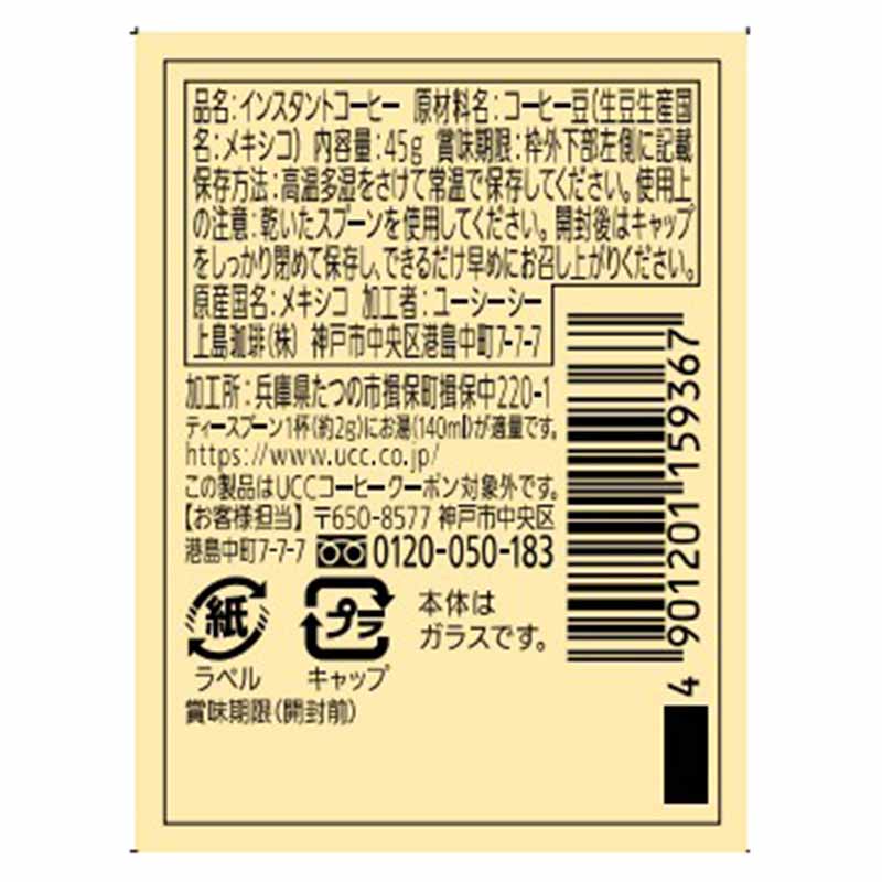 ●インスタントコーヒー ●原材料名:コーヒー豆(生豆生産国名:メキシコ) ●内容量:45g