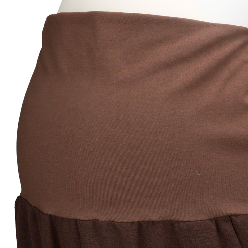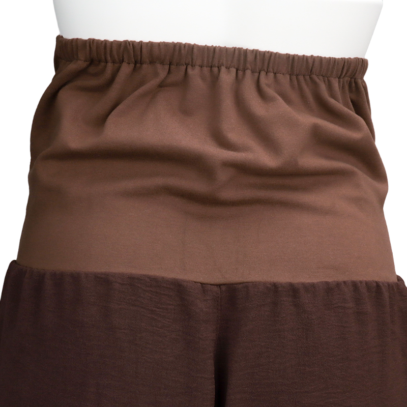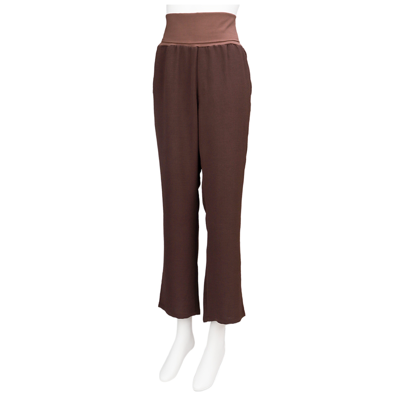 軽く、表面感がある素材を使用したワイドパンツです。ベーシックなデザインなのでどんな上衣とも合わせやすいです。 ウエスト部分を折り返しても着用いただけますので 妊娠初期のおなかのあまり出ていない時期や産後にも活躍できる商品です。