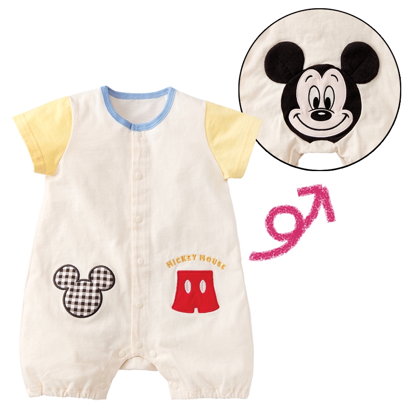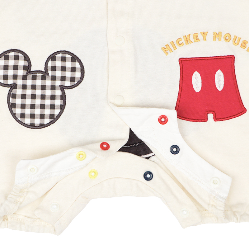 中国製 ●素材= 本体及びアップリケ部分:綿100% パイル部分 綿80% ポリエステル20% ●サイズ(約・cm)= 60(身丈42・身幅26・袖丈7.5・股上36・股下6) 70(身丈45・身幅27・袖丈8・股上38・股下7) 80(身丈48・身幅28・袖丈8.5・股上40・股下8) ?Disney