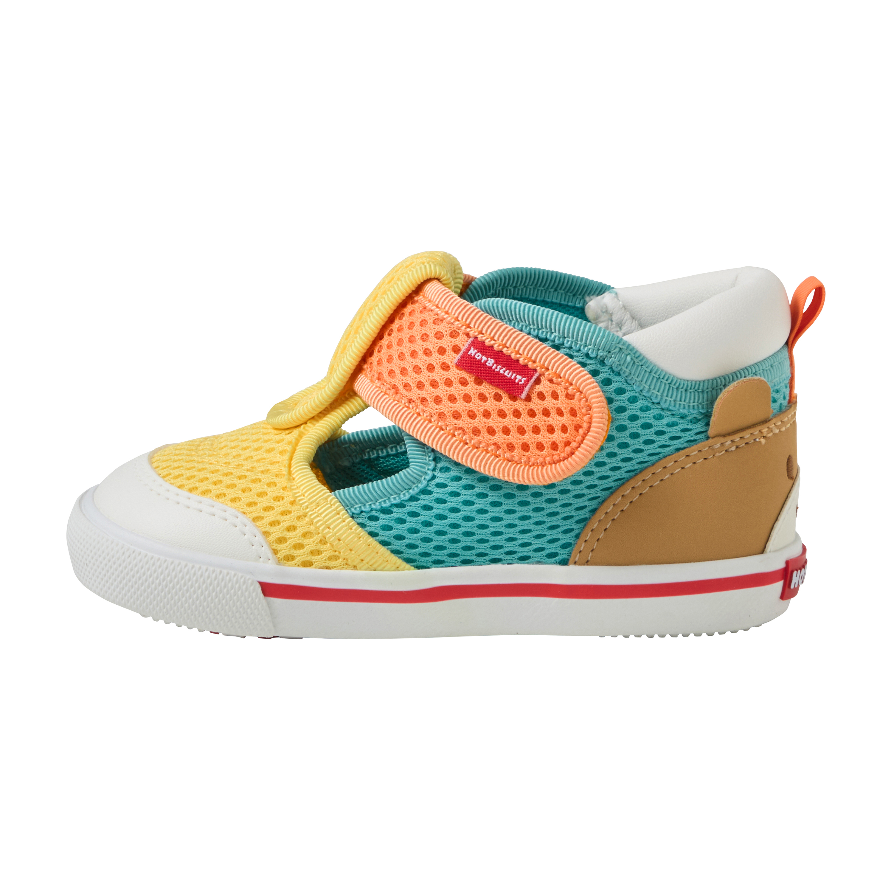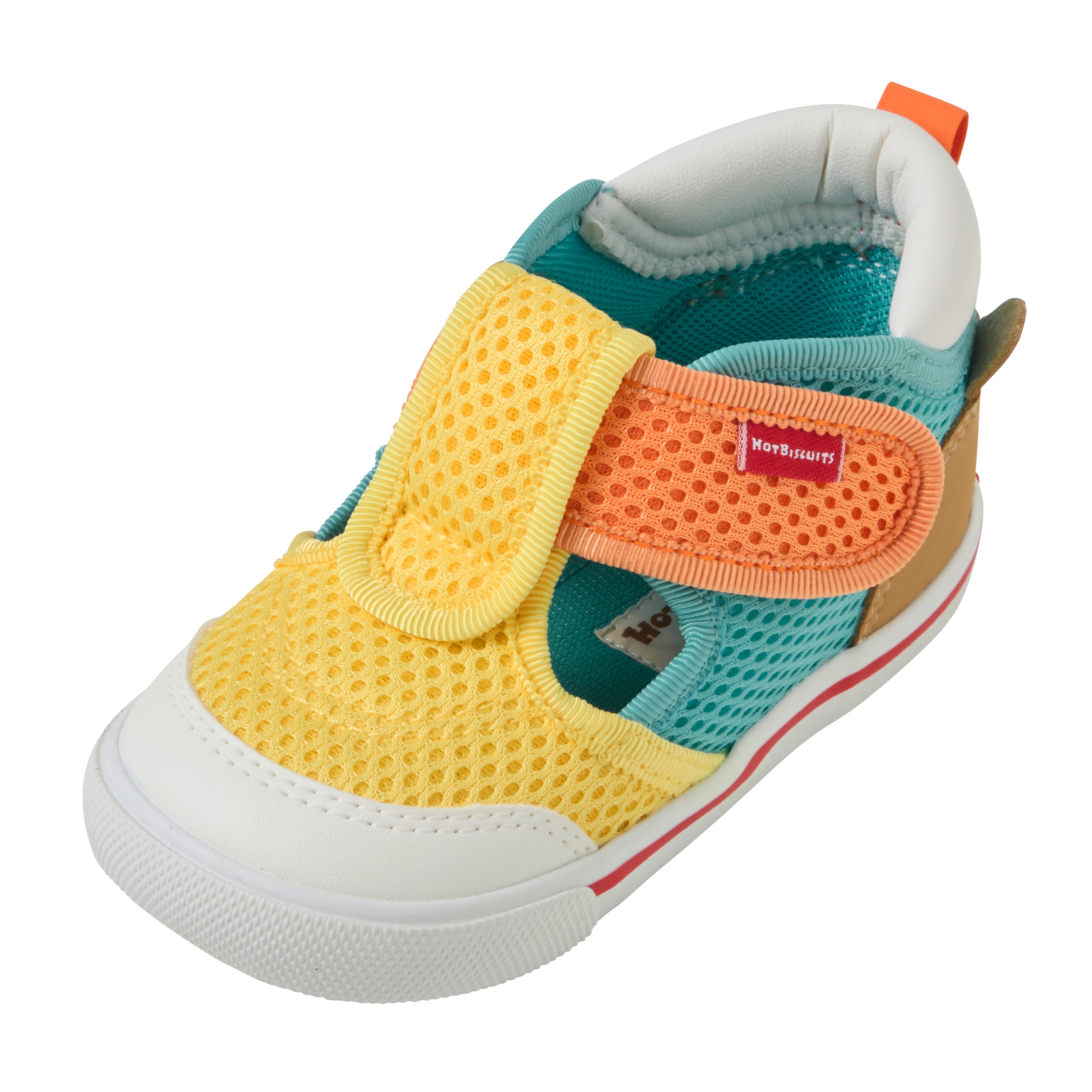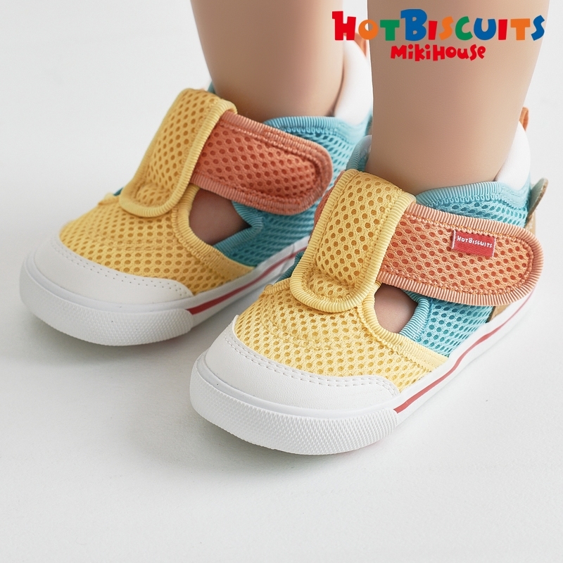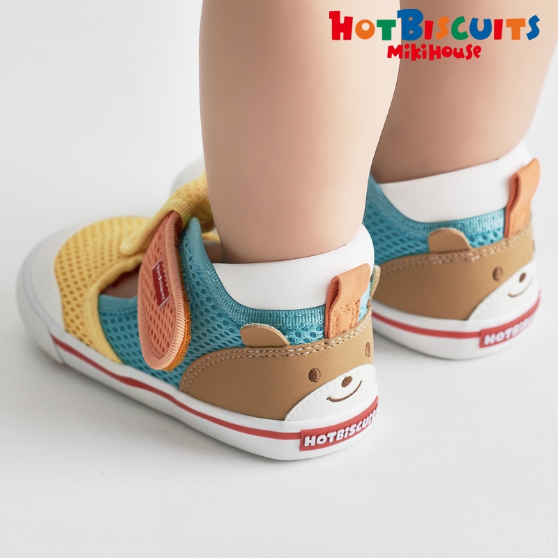 人気のかかと顔シリーズのセカンドベビーシューズ。 かかとにくまの顔があるデザインで後ろ姿までかわいく、顔ドンシリーズのウェアとの相性もばっちり! カラフルなカラーとデザインでお子さまの足元のアクセントになります。 春先からは靴下を履いてスニーカーとして、夏は裸足でサンダルとして活躍してくれますよ。 つま先が閉じているので、公園で石が入り込んで痛くなったり、つま先をぶつけて怪我をしてしまうのを防いでくれます。 もちろん歩行をサポートする機能も充実しています。 通気性・速乾性に優れたダブルラッセル素材で、 汗っかきなお子さまの春夏用のシューズにぴったり◎ よちよちあんよのお子さまには →ファーストシューズ:72-9306-146 【ミキハウス セカンドシューズ】 歩きはじめると、走る、跳ぶなど動きがさらに活発になり、行動範囲も広がります。 セカンドシューズは、活発な動きによる衝撃から足をしっかり保護しながら、正しい歩行をサポートします。 土踏まずの形成など足の成長を促すシューズです。 ■ゆとりと丸みのあるつま先 着地するたびに広がる赤ちゃんの足の指。 この指の動きを妨げることなく指を使って地面をつかむように歩けるようにしています。 ■しっかりしたカウンター(シューズのかかと部分) 大きく固めのカウンターで傾きやすい赤ちゃんの足をまっすぐ支え、 シューズとの一体感を高めて歩行を安定させます。 ■フレックスソール 赤ちゃんの足が曲がる位置で曲がる柔軟なソールは、 スムーズな歩行を助け、土踏まずの形成を促します。 ■つま先のそり返し つま先が少しあがっているので、歩き始めの赤ちゃんがつまずきにくくなっています。 ■甲は面ファスナー 大きくベルトが開き、履かせやすくなっています。 面ファスナーで調節できるので、甲高の赤ちゃんの足にもフィットします。 【仕様】 ・2Eラスト設計 ・靴箱付き(ご奉仕品につきましては付属していない場合がございます。) 〈ママスタッフのレビュー〉 ・汗っかきな子どもにぴったり!靴下をはいて春先から、暑くなったら裸足で。長いシーズン履けました! ・つま先が出るサンダルが不安な時期に、スニーカーとサンダルのいいとこどりのこのシューズはおすすめです。 ・カップインソールのおかげで、お手入れの際乾かしやすい! 靴のサイズが小さくなっていないか心配な時にカップインソールの上に立たせることで、 今どこまで指がきているかわかるので、サイズアップの目安にできて便利◎ ・水遊びやお手入れの際に濡れても乾きやすい素材です。 《HOT BISCUITS ーホットビスケッツー》 ミキハウスホットビスケッツは、”Good Quality”がキーワードのブランド。 子どもたちには毎日ごきげんに、楽しく健やかに 過ごしてほしいから、 お子さまのための良いものづくりを大切にしています。 男の子も女の子も子どもらしく、おしゃれに可愛く着られるアイテムがいっぱい。 赤ちゃんからキッズまでの子ども服・ベビー服・ベビー用品等を幅広くご用意しています。 春夏秋冬の季節に合わせた、ご出産祝いやプレゼント、ギフトもおすすめです。