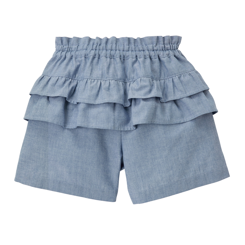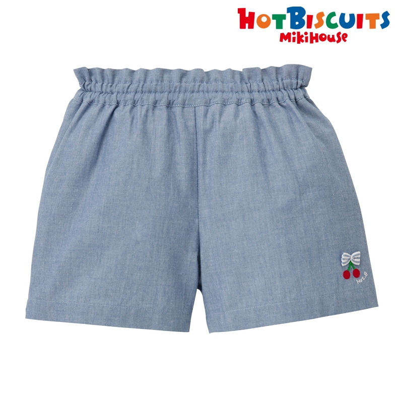 ミキハウス ホットビスケッツのダンガリー素材のキュロットパンツ。