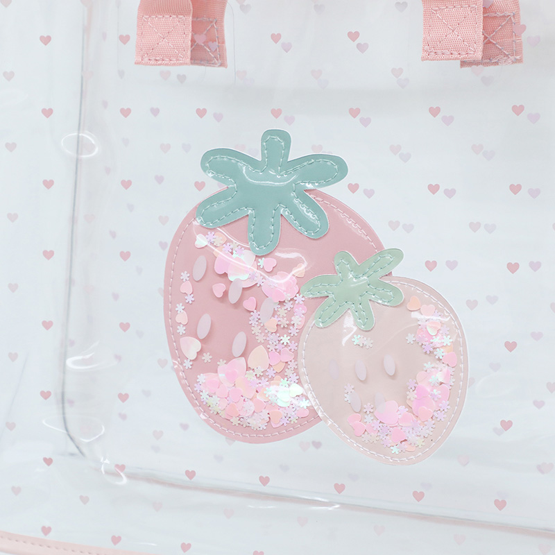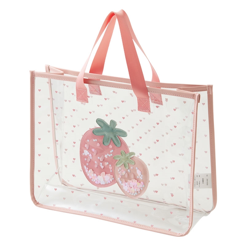 フロントの大きないちごとスパンコールが目を惹く、ビーチバッグ。 マチがしっかりあるので、スイムグッズやお着替えセットを収納可能です!