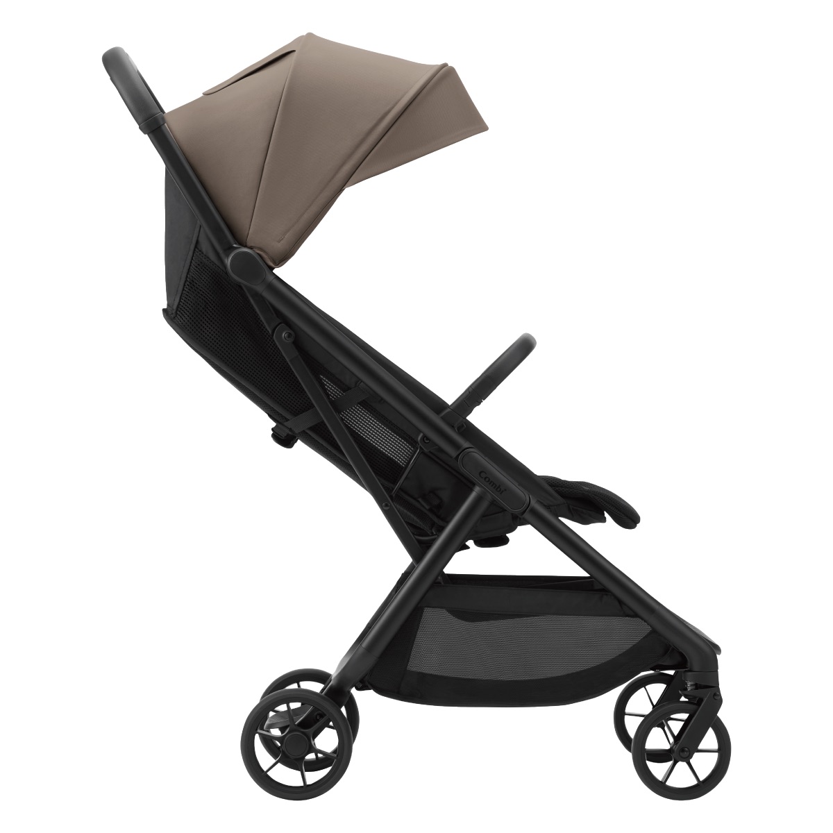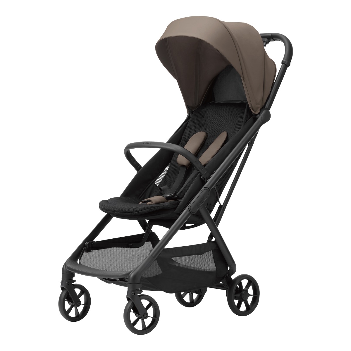 フロントガード・インナークッション標準搭載! オートクローズ最小コンパクト※1 B型ベビーカー ※1 2024年~2026年2月に国内で販売されたオートクローズ機能搭載のEN基準適合ベビーカー商品群(小売り専売品を除く)における折り畳み時の3辺合計最小値比較。(2026年 2月時点 コンビ調べ) ●Auto Close & Auto stand レバーを握って、手を離すと自動でクローズ、そのまま自立。 床との接地面に緩衝材を追加し、より使いやすくなりました。 ●フロントガードが標準搭載になってリニューアル。 フロントガードをつけたまま折り畳み可能。 ●Slide Fit Belt 肩ベルトの高さ調節はスライドするだけ。 ベルトカバーはホックでサッと外して洗える新仕様に。 ●マグネットバックル マグネットでラクにピタッとベルト装着。 ●Carry Grip 重量5.9kg※で持ち手があるから、抱っこしながらでも片手で楽に持ち運び。 ※インナークッション、キャリーグリップカバー、ガードを除く。 ●スマートハンドリング シングルタイヤに計8個のベアリングとサスペンションを搭載。進む、曲がるを滑らかに。 ●フロントガードとインナークッションが標準搭載