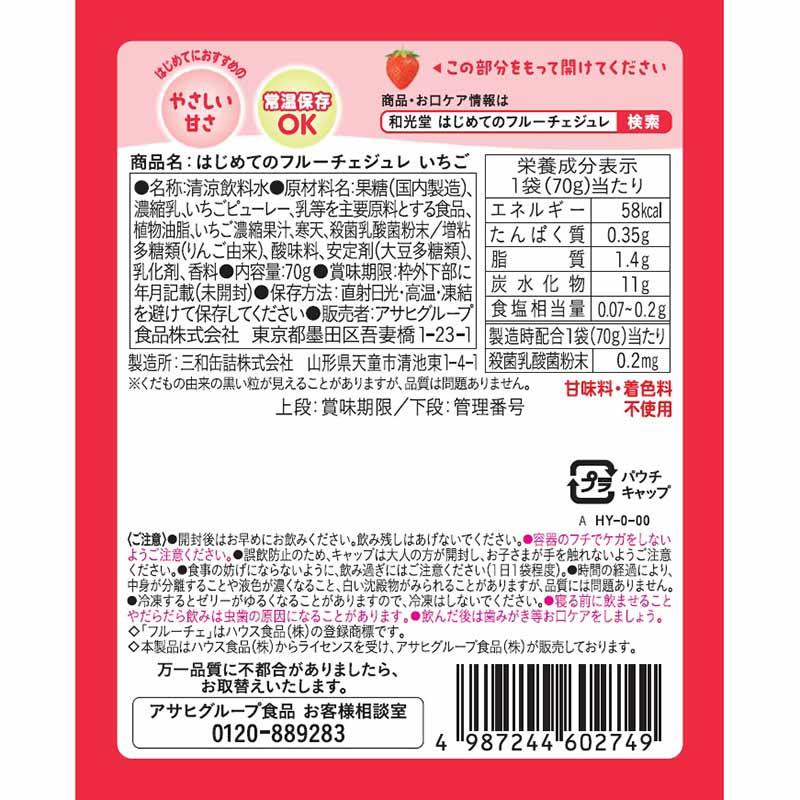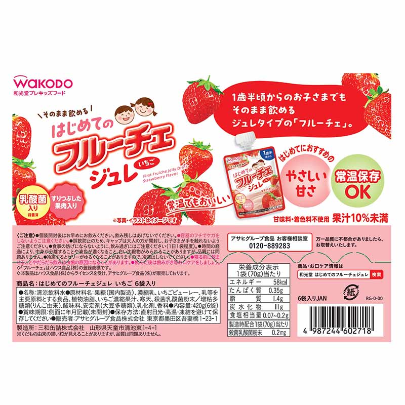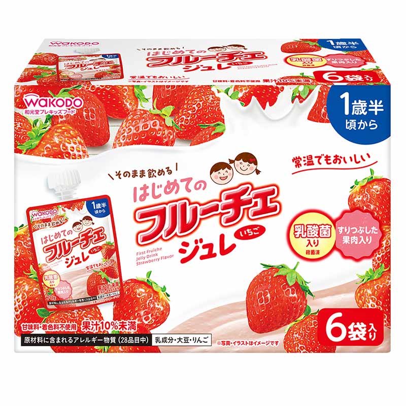 ●内容量:70g×6袋 ●原材料:果糖(国内製造)、濃縮乳、いちごピューレー、乳等を主要原料とする食品、植物油脂、いちご濃縮果汁、寒天、殺菌乳酸菌粉末/増粘多糖類(りんご由来)、酸味料、安定剤(大豆多糖類)、乳化剤、香料【栄養成分表示】エネルギー:58kcal、たんぱく質:0.35g、脂質:1.4g、炭水化物:11g、食塩相当量:0.07~0.2g<枠外><製造時配合>殺菌乳酸菌粉末:0.2mg