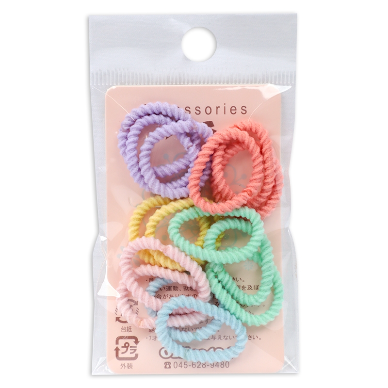 普段使いにピッタリなミニリングゴム。シンプルなデザインで、髪の少ないお子様にもお使いいただけます。