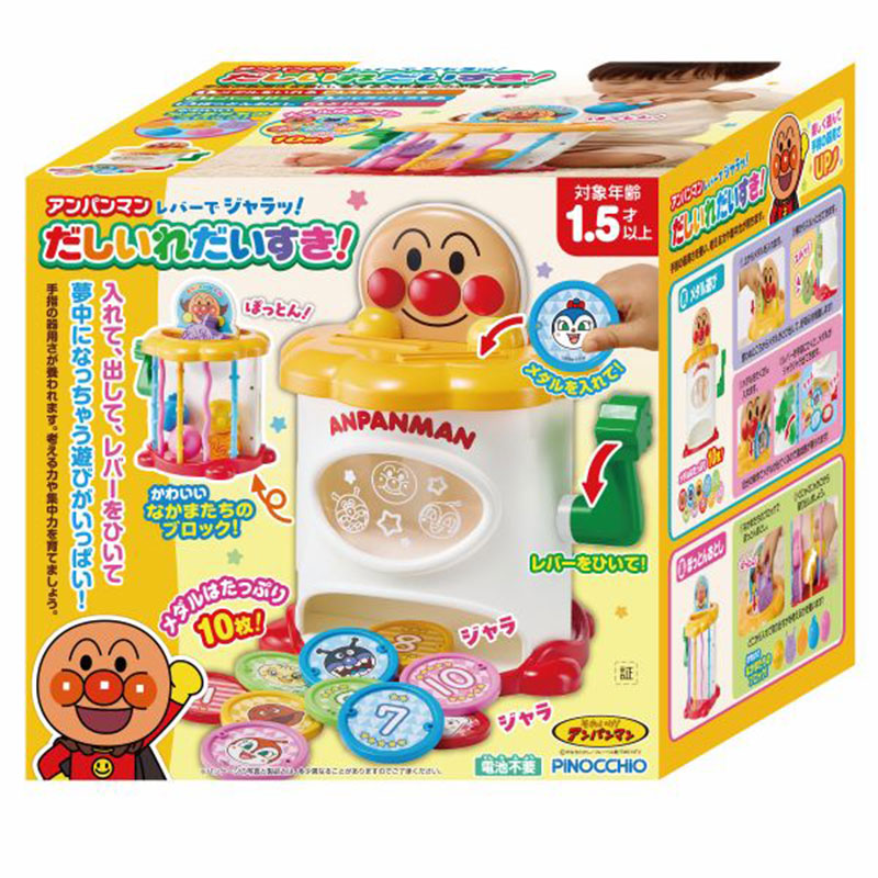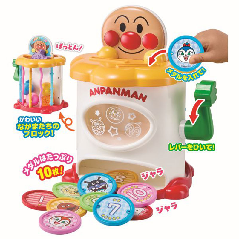 ●対象年齢:1歳6ヵ月~ ●電池:電池・不要 ●付属品:本体×1/アンパンマンプレート×1/メダル×10/なかまたちのブロック×5/シールシート1・2×各1 (C)やなせたかし/フレーベル館・TMS・NTV