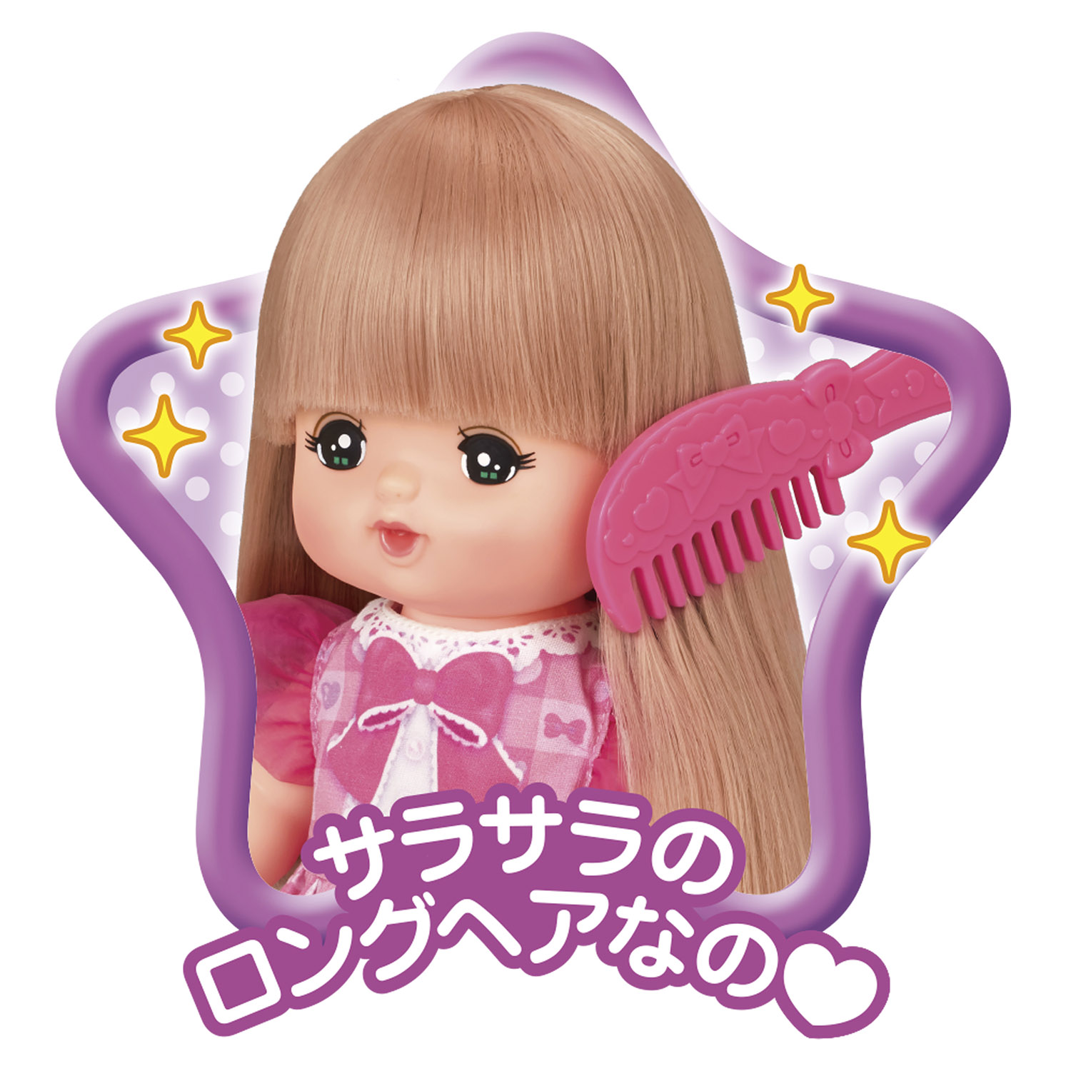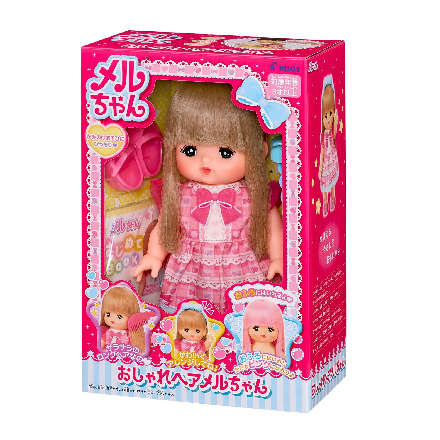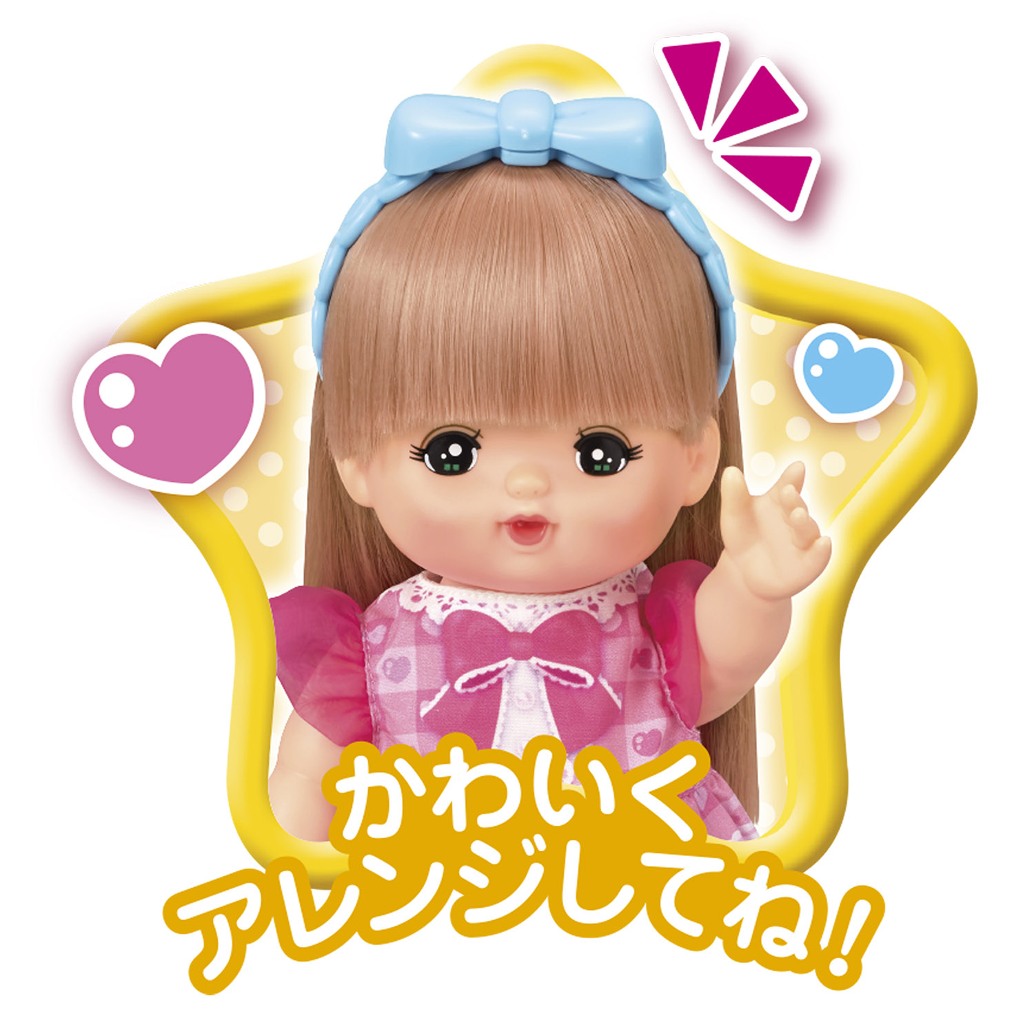 成長に合わせて遊べるお世話人形のメルちゃん。 ヘアアレンジが楽しめるサラサラロングヘアのメルちゃんです。 はじめての髪の毛あそびにおすすめのセットです。 かわいいカチューシャとワンピースでメルちゃんをおしゃれにできます。 お風呂に入ると髪がピンクになります。