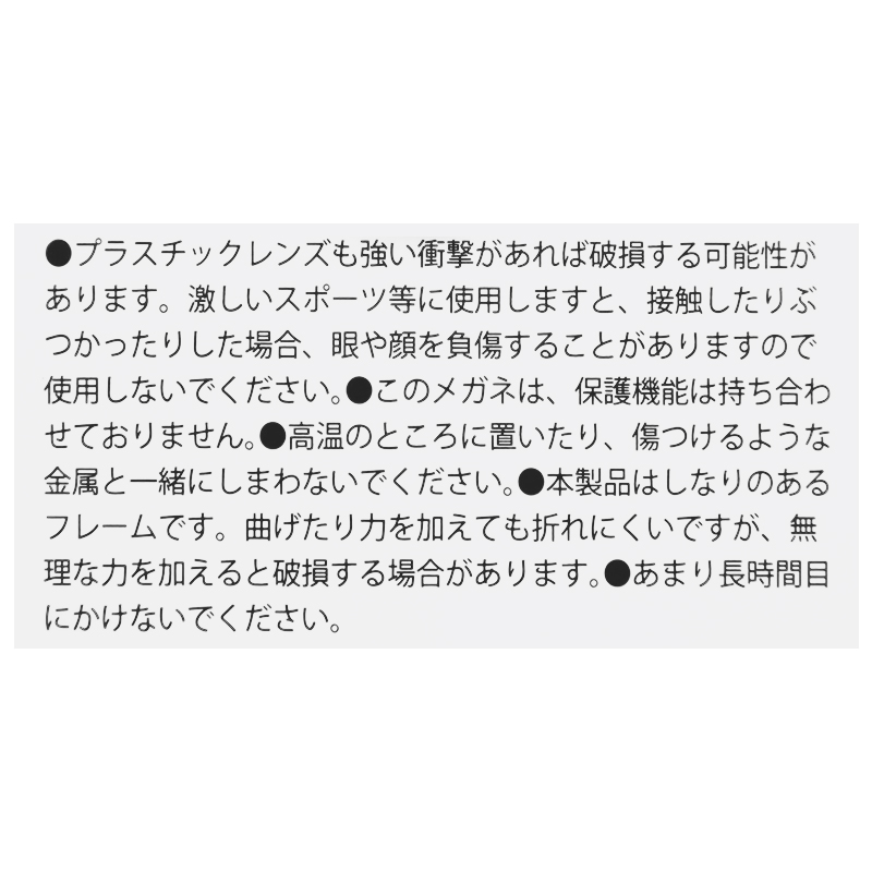 ●サイズ(約・cm)=[レンズ幅]4.3 [レンズ高さ]3.8 [ブリッジ幅]1.6 [テンプル長さ]12.3 ●素材=[レンズの材質]プラスチック [レンズわく]プラスチック [テンプル]プラスチック