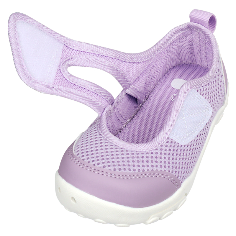 おすすめポイント 1.水遊びはもちろん、外遊びにも履けるお洒落なデザイン 2.軽くてムレにくいメッシュ素材を使用しています 3.ワンタッチテープで大きく開くため履きやすく、つま先をしっかりガードするので、川遊びやアウトドアでも活躍します。 4.靴底に3つの水抜き穴があいているので、水はけがよいです。