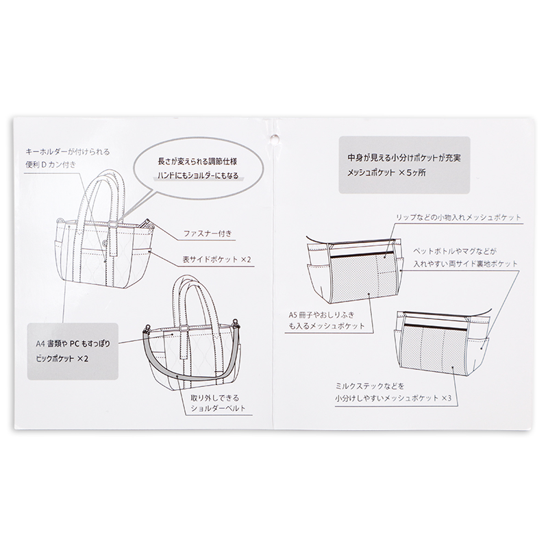 長さが変えられる調節仕様ハンドでショルダーにもなる ポケットは全部で12か所 ・自立する仕様 ・撥水生地使用 ・取り外しできるショルダーベルト付き ・A4書類やPCがすっぽり入る ・中身が見える小分けメッシュポケット×5か所