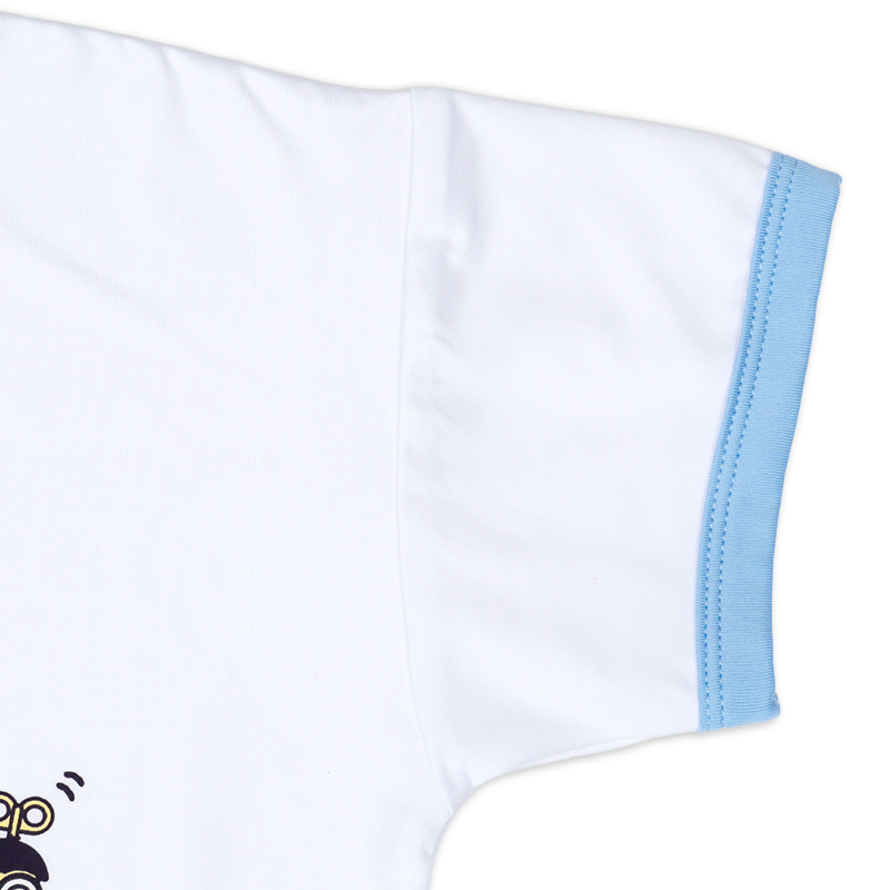 ●素材=ポリエステル95% ポリウレタン5% ●サイズ= 80cm=身丈38.5・身巾33・肩幅32・袖丈7.5・裄丈23.5 90cm=身丈40.5・身巾35・肩幅34・袖丈8.5・裄丈25.5 SANRIO