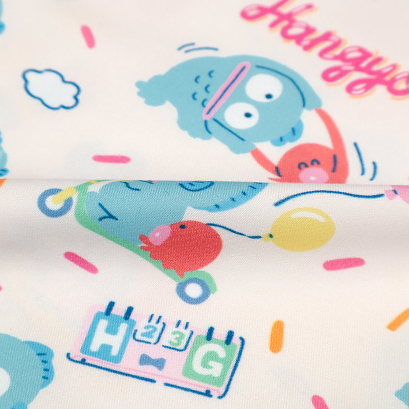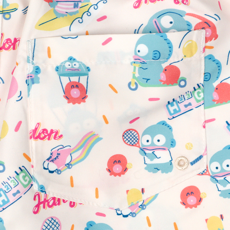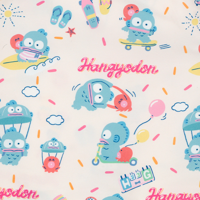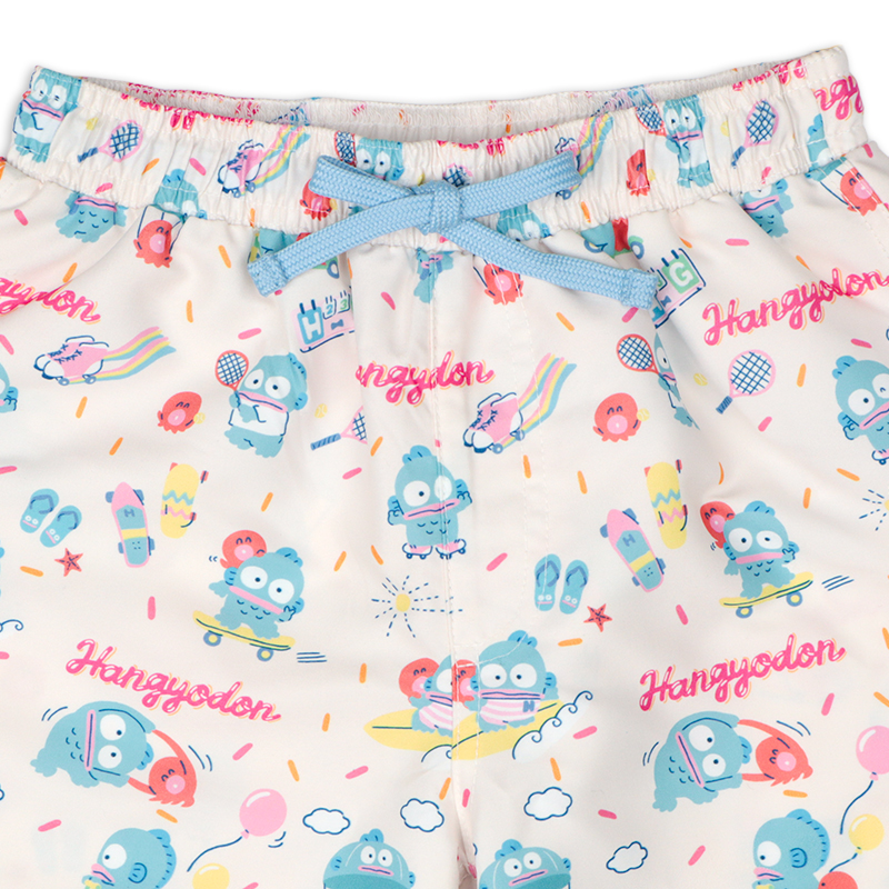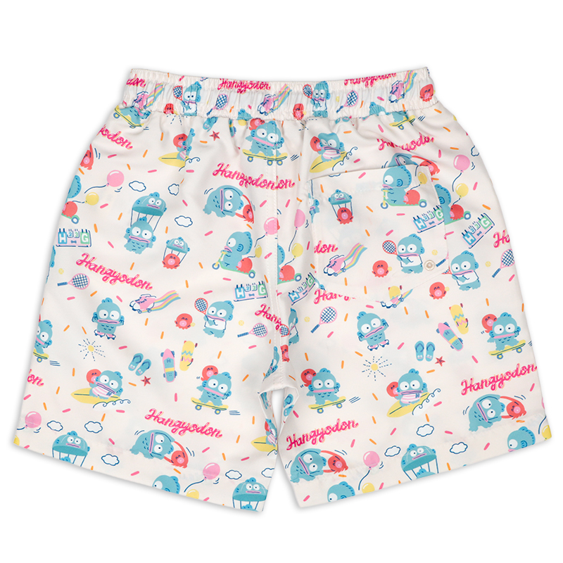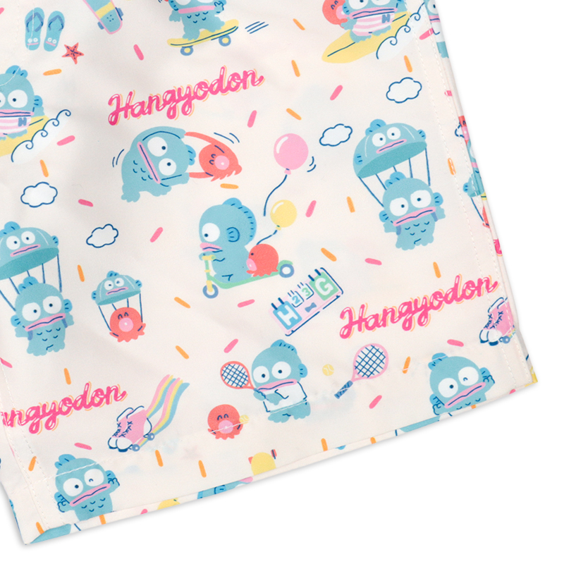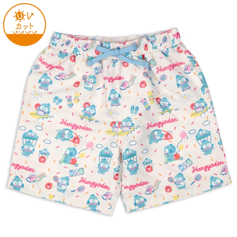 ハンギョドンの総柄プリントがかわいいサーフパンツです。ウエスト総ゴム仕様でスピンドル付き。後ろ右側にポケット付き。UV遮蔽率も90%以上です。海やプールに大活躍するサーフパンツです。