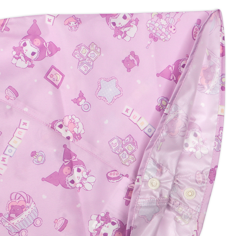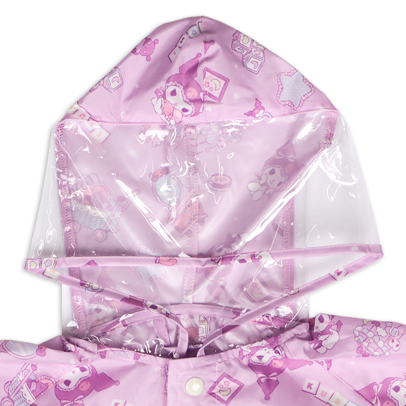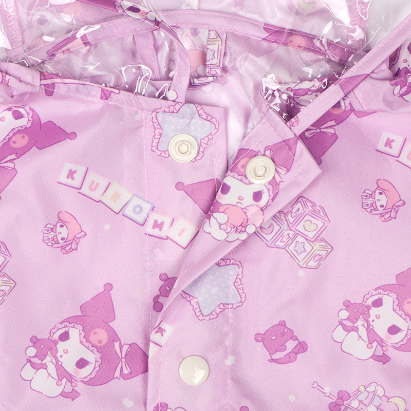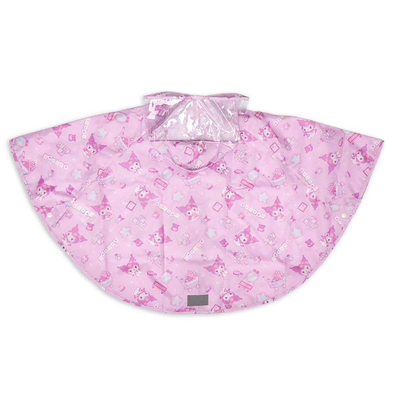 クロミの総柄デザインのレインポンチョです。 出かけるのがおっくうになりがちな雨の日でも、かわいいクロミと一緒に楽しくお出かけしましょう。