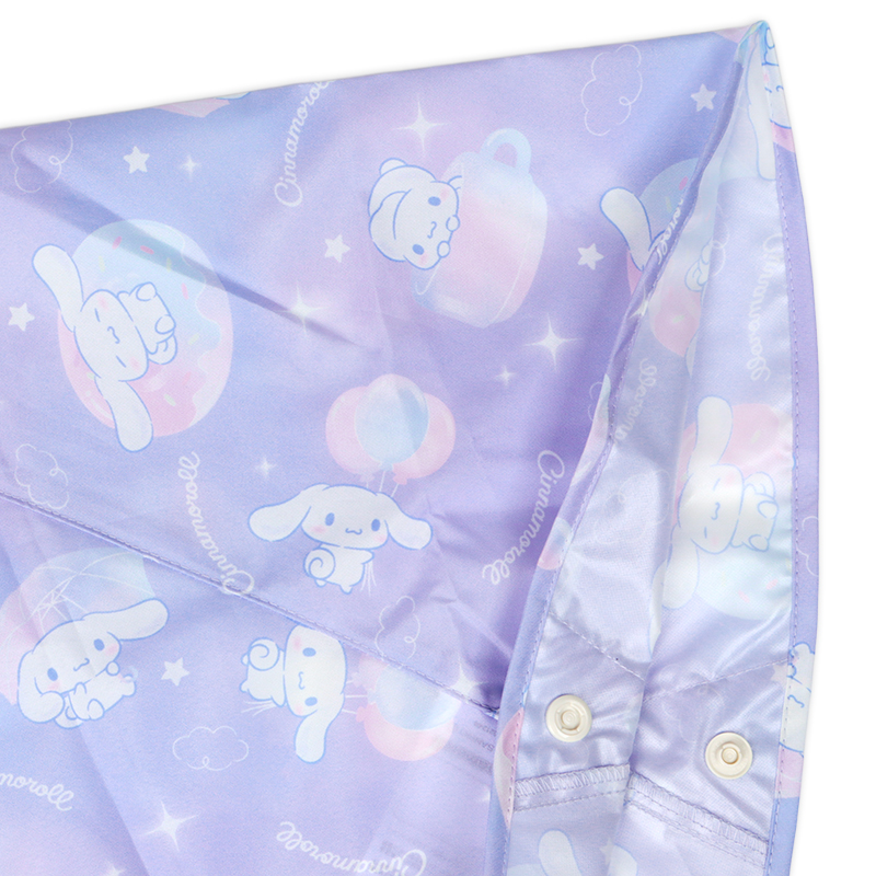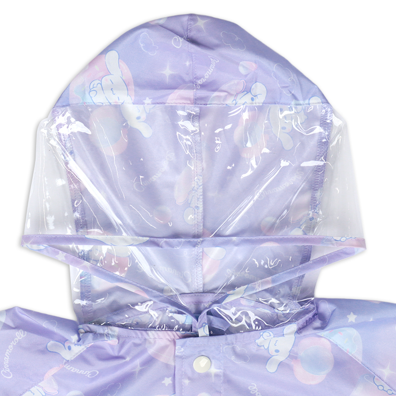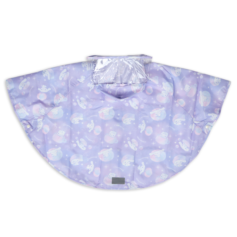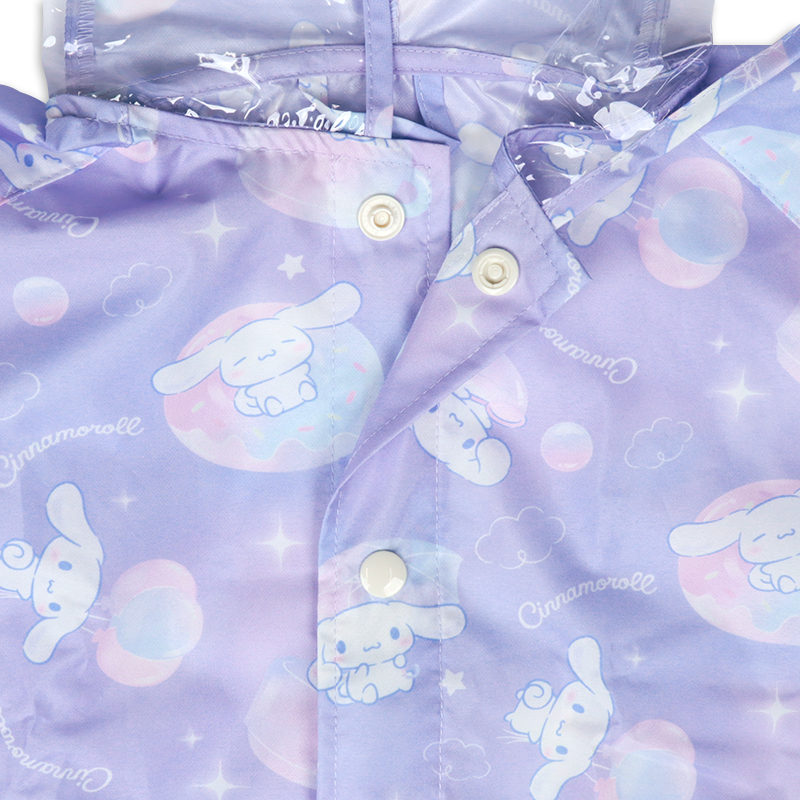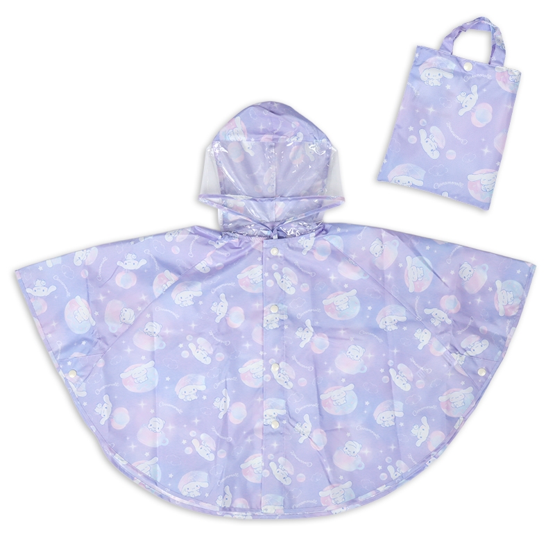 シナモロールの総柄デザインのレインポンチョです。 出かけるのがおっくうになりがちな雨の日でも、かわいいシナモンと一緒に楽しくお出かけしましょう。
