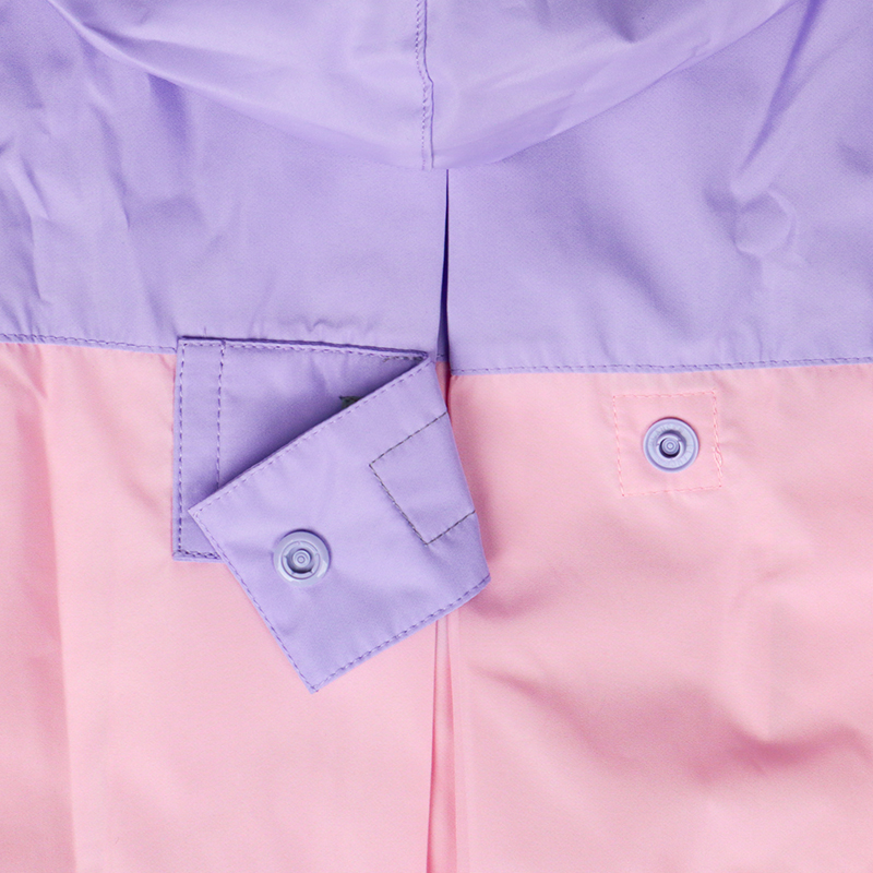 普段のコーディネートにも合わせやすいように、マウンテンパーカー風のバイカラーデザインに仕上げました。通園だけでなく、お出かけの日にもぴったりです。