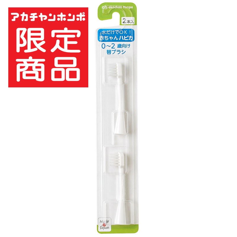 水だけでもきれいにみがける。 【替ブラシ】3歳から用 2本/パック 互換性がございますので全てのハピカシリーズに装着が可能です。 ●特長 ・うがいの苦手なお子さまでも水だけできれいに磨けます。 ・歯と歯ぐきにやさしい毛先が丸加工。 正しい歯みがきのため、ブラシが傷んだら早めに交換しましょう ●ブラシの寿命と交換の目安 ・毛先が開いた時 ・毛の部分が汚れた時 ・毎日2回以上の使用で1ヶ月が過ぎたら ●使用上の注意 ・本体の取扱説明書に従ってご使用ください ・保管の際は小さなお子さまの手が届かないところに保管してください。 ・お子さま1人でのご使用は誤ってのどをついたりする等の重大な事故につながる恐れがあります。 十分に注意の上必ず保護者の方が同伴し、保護者の方がみがいてあげてください