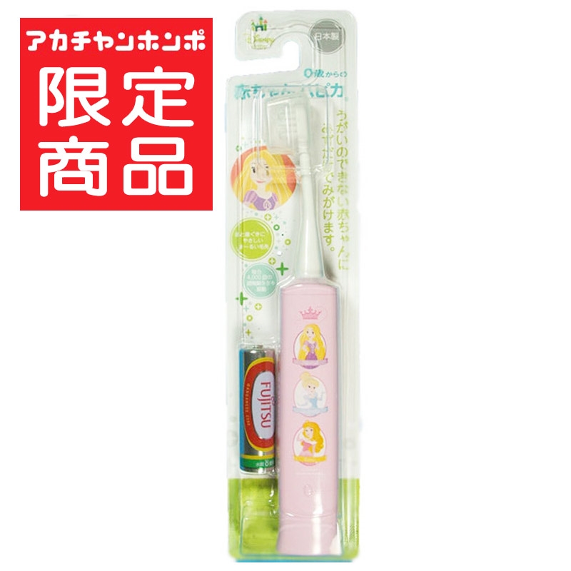 アカチャンホンポ限定のディズニー柄 「クチュクチュペッ」できない赤ちゃんに 赤ちゃん用の電動歯ブラシです。うがいのできない赤ちゃんに水だけでみがけます。 小さな歯をやさしくブラッシングします。 水だけできれいになる歯ブラシ (c)Disney