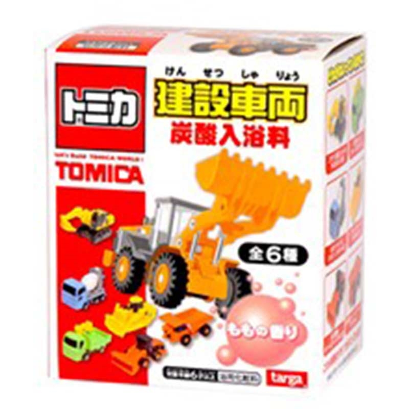炭酸入浴料の泡の中からミニトミカの建設車両が1台が出てきます。 何が出てくるかはお楽しみ。 ※パッケージデザインが、画像と異なる場合がございます。予めご了承ください。