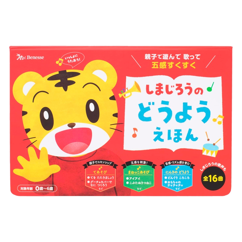 ●出版社:ベネッセコーポレーション ●サイズ(約・mm):縦160×横235×厚み25 ●ページ数:37ページ ●電池:単四型乾電池×2本 ●収録曲: 1.てを たたきましょう 2.いっぽんばし 3.とんとんとんとん ひげじいさん 4.げんこつやまの たぬきさん 5.グーチョキパーで なに つくろう 6.おべんとうばこの うた 7.アイアイ 8.かたつむり 9.おにの パンツ 10.こぶたぬきつねこ 11.ぞうさん 12.どんぐり ころころ 13.かえるの がっしょう 14.やまの おんがくか 15.おもちゃの チャチャチャ 16.ゆりかごの うた (C)Benesse Corporation/しまじろう