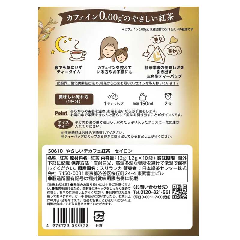 カフェインが苦手な方にうれしい、カフェイン0.00gで楽しめるデカフェシリーズ。 香り高く、美しい水色のセイロン紅茶。 どなたにも飲みやすい、すっきりとした味わいでミルクティーにもおすすめです。 ※パッケージデザインが、画像と異なる場合がございます。