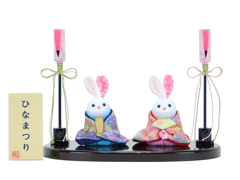 可愛いうさぎのおひなさまです。 油灯と飾り台が付いています。 コンパクトで場所を選ばずお飾り頂けます。 うさぎといえば、跳びはねる姿から飛躍。 子沢山から豊穣・子孫繁栄の象徴とされ、長い耳は福を集めるといわれています。