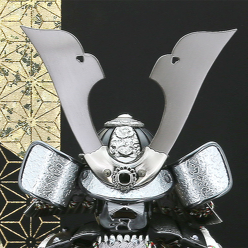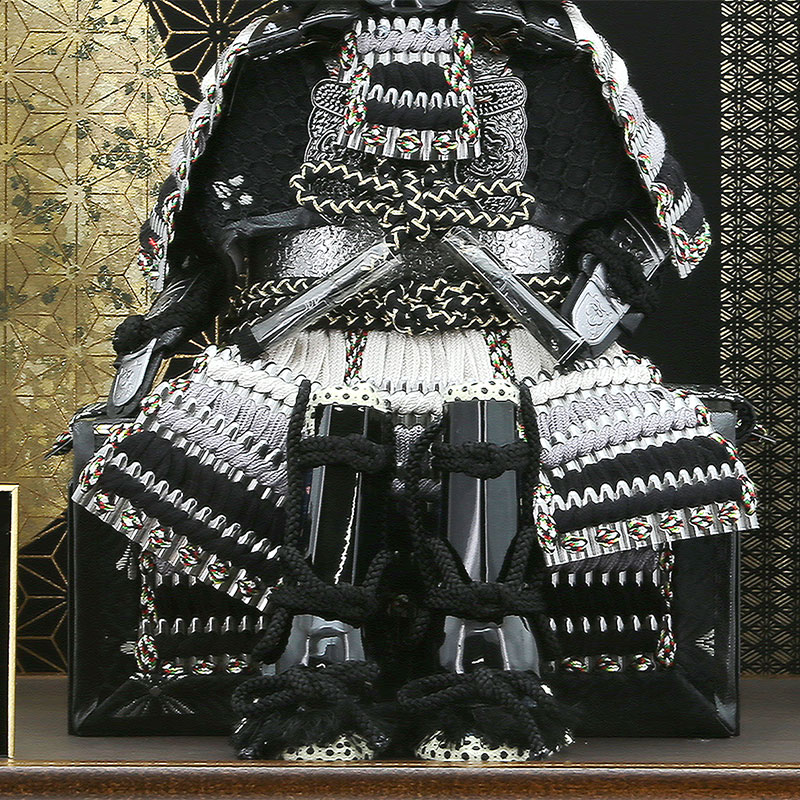 鎧兜は己の身体を守る意味が強く込められおりお子様を守ってくれるよう願いが込めて黒とグレーの兜でまとめて仕上げました。