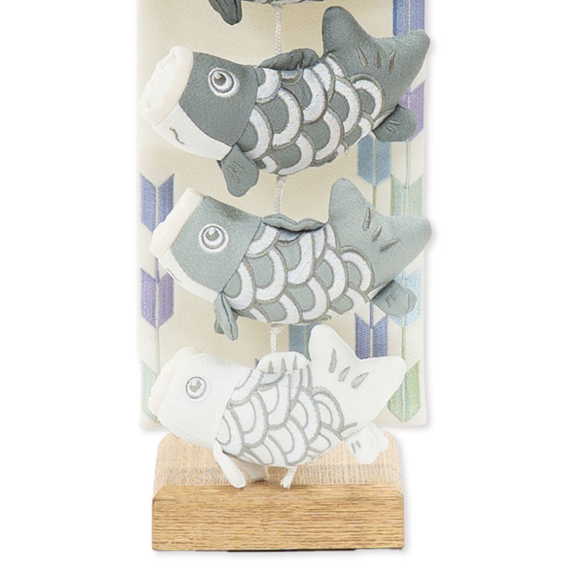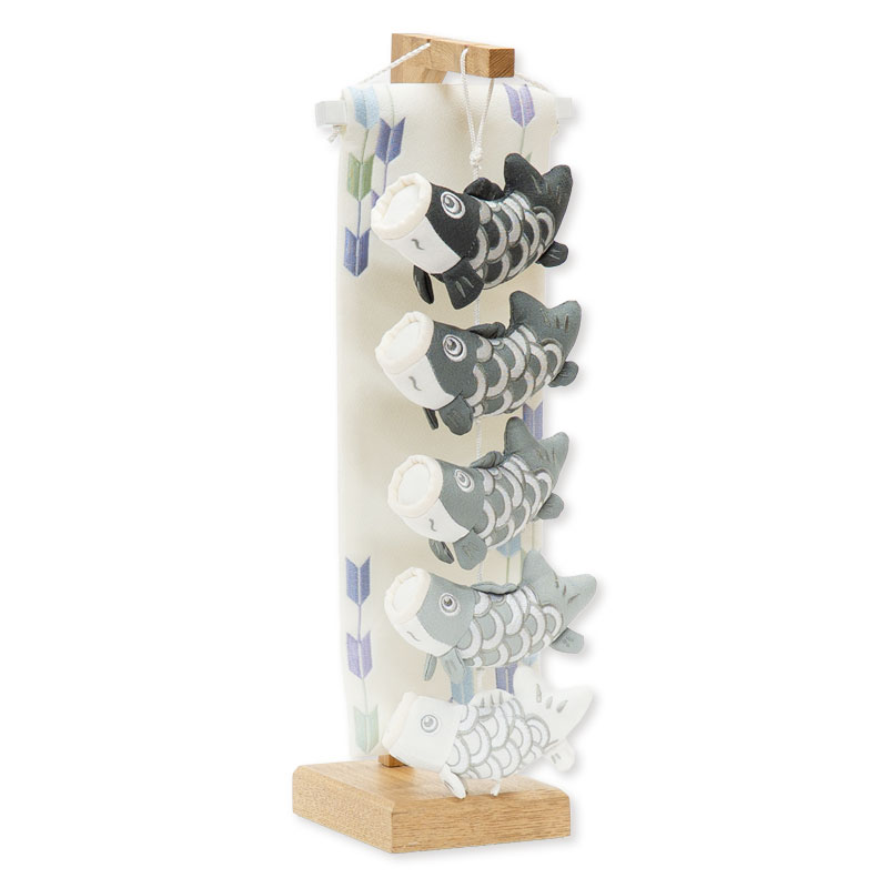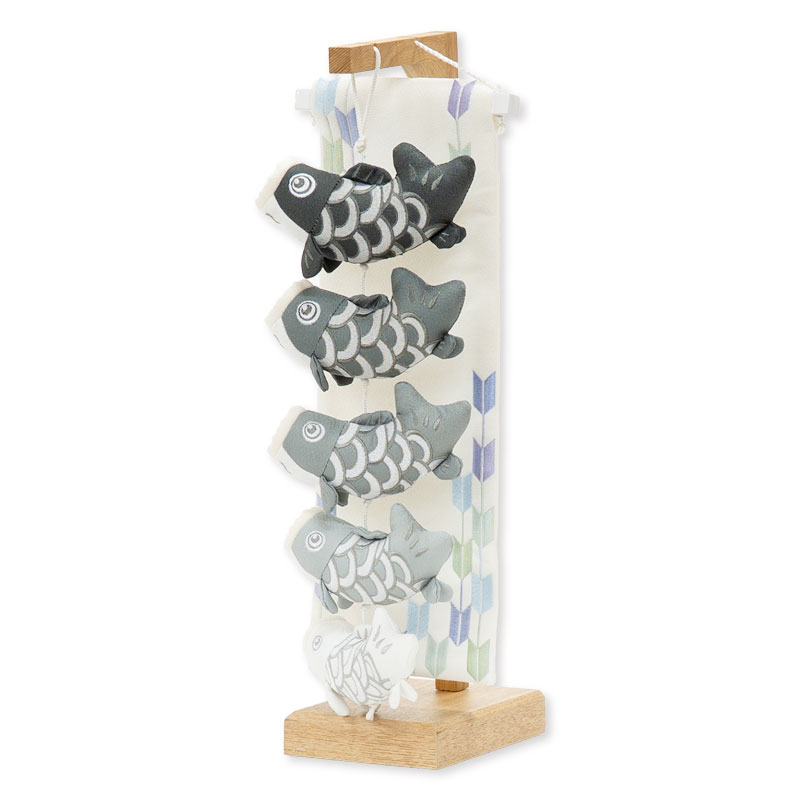 お部屋に飾るタイプの室内鯉のぼりです。 どのようなお人形にも合わせやすいグレー系の配色の鯉飾りです。 ※商品の画像は実際の商品と一部異なる場合がございますのでご了承ください。