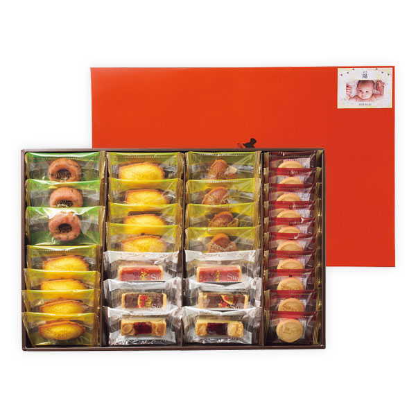 ●タルト(ショコラオランジュ・りんごとフランボワーズ・ブルーベリーのタルト)×各2、マドレーヌレモン×8、ハートフィナンシェ(キャラメル味)×4、サブレバニーユ×10、ティグレフレーズ×3 ●箱サイズ:52×34×4cm ●名入れ ※賞味期限は製造・加工日を基準に表記しております。お届け時の期限が配送状況等により異なりますので、あらかじめご了承ください。 ※賞味期限が表記されていない商品の賞味期限は91日以上です。