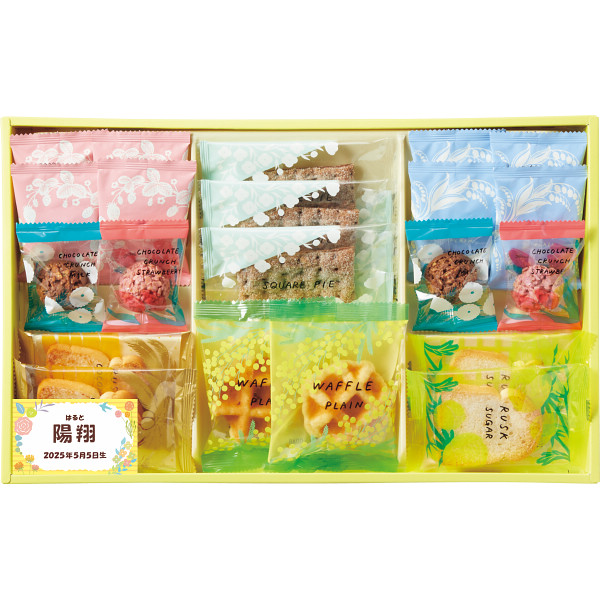 ●焼きほろろクッキー×8(プレーン・いちご×各4)、スクエアパイ(ショコラ)×3、ワッフル(プレーン)×2、ラスク×4(シュガー・ココナッツ×各2)、チョコレートクランチ×4(ミルク・いちご×各2) ●箱サイズ:40×24.5×3.5cm ●名入れ ※賞味期限は製造・加工日を基準に表記しております。お届け時の期限が配送状況等により異なりますので、あらかじめご了承ください。 ※賞味期限が表記されていない商品の賞味期限は91日以上です。