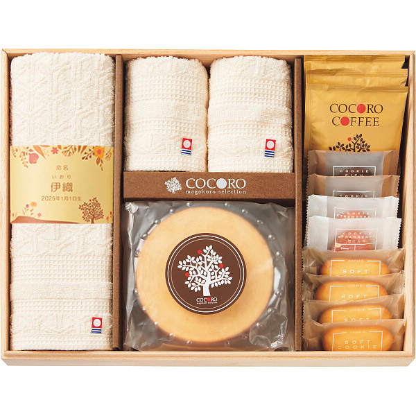●今治産フェイスタオル(約34×75cm・綿100%・日本製)1枚・今治産ウォッシュタオル(約34×35cm・綿100%・日本製)2枚・バウムクーヘン(北海道産生乳100%の生クリーム使用)×1・ソフトクッキー×4・クッキー(いちごミルク×2・ココア×2)・ドリップコーヒー8g×3 ●箱サイズ:41×30.5×7.5cm ●賞味期限:常温で90日 ●名入れ ※賞味期限は製造・加工日を基準に表記しております。お届け時の期限が配送状況等により異なりますので、あらかじめご了承ください。