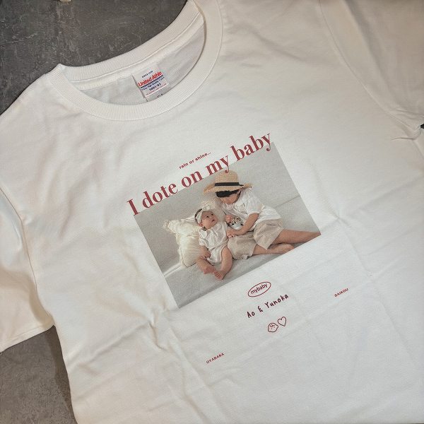 こどもの写真で一点からオリジナルグッズが作成できます。 首元が丈夫でシンプルなシルエットは繰り返し着用しても型崩れしにくく、大切な思い出も長持ちします。