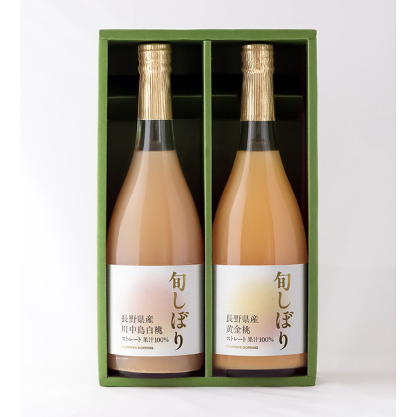 甘い香りが漂う長野県の桃園で収穫した「川中島白桃」と「黄金桃」を品種を限定して搾った、ストレートジュースの詰め合わせです。