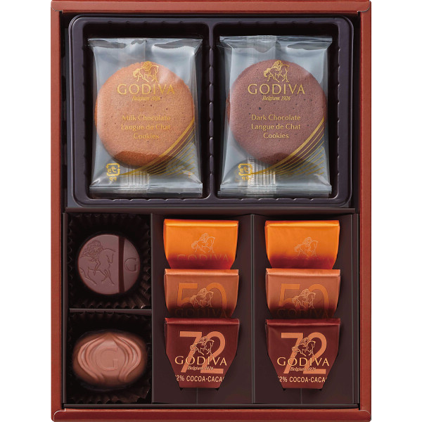 選び抜かれたチョコレートとスクエアタイプのシンプルなカレ、チョコレートをサンドしたラングドシャクッキーなど、ゴディバのバラエティ豊かな商品を一度に楽しめる詰め合わせ。 ※こちらの商品は、11/2より受注開始となります。