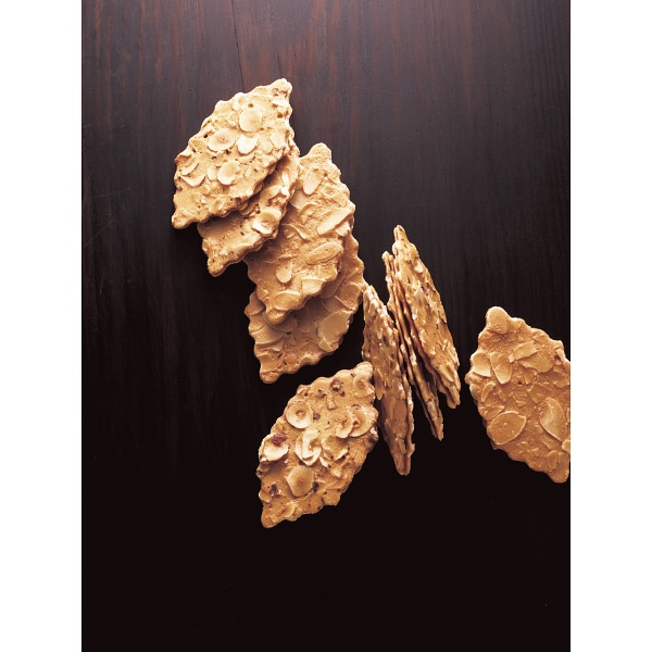 繊細なクッキーに、スライスナッツをぎっしり敷き詰めてパリッと香ばしく焼き上げました。 それぞれの美味しさを引き立てるチョコレートを吟味してサンドいたしました。