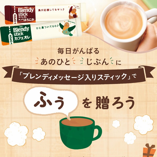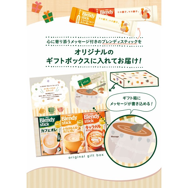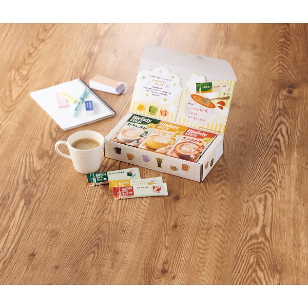 ●ブレンディスティックカフェオレ8.8g×8、ブレンディスティックとろけるミルクカフェオレ9.3g×8、ブレンディスティックキャラメルカフェオレ9g×8 ●箱サイズ:26×13.8×5.5cm ※アレルギー物質を含む特定原材料8品目について明記しております。 ※賞味期限が表記されていない商品の賞味期限は91日以上です。 ※賞味期限は製造・加工日を基準に表記しております。お届け時の期限が配送状況等により異なりますので、あらかじめご了承ください。