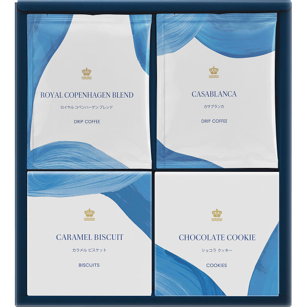 ●ロイヤル コペンハーゲンブレンド・カサブランカ各10g×3、カラメルビスケット65g・ショコラクッキー40g×各1 ●箱サイズ:26.1×23×3.6cm ※アレルギー物質を含む特定原材料8品目について明記しております。 ※賞味期限が表記されていない商品の賞味期限は91日以上です。 ※賞味期限は製造・加工日を基準に表記しております。お届け時の期限が配送状況等により異なりますので、あらかじめご了承ください。
