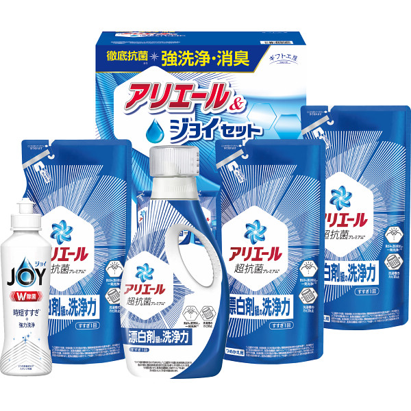 菌を寄せ付けないクリーンギフト。 抗菌力・洗浄力に優れたアリエールとダブル除菌のジョイをセットしました。