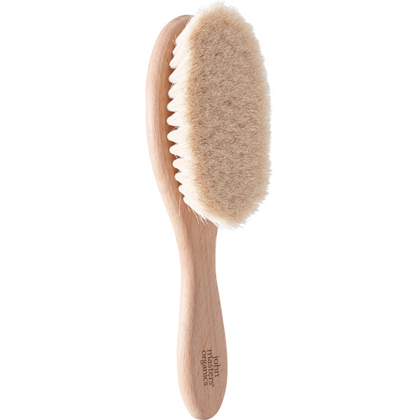 トウモロコシ由来のポリエステルで作られた生分解性のある人工毛と、なめらかなブナの天然木でできたブラシ。 頭をなでるようなやさしい感触で型くずれもしにくい、毎日のブラッシングにぴったりのブラシです。 天然木はベビーへの使用を配慮した無塗装仕上げ。