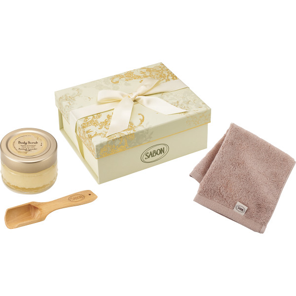 ●セット内容=ボディスクラブ60g×1、ウォッシュタオル(約34×35cm)×1、スクープ×1 ●綿100%(パイル糸=オーガニック100%) ●箱サイズ:15×18.5×7.5cm ●ボディスクラブ=イスラエル製、タオル=日本製