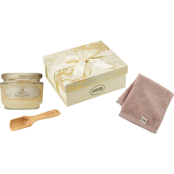 ●セット内容=ボディスクラブ320g×1、ウォッシュタオル(約34×35cm)×1、スクープ×1 ●綿100%(パイル糸=オーガニック100%) ●箱サイズ:15×18.5×7.5cm ●ボディスクラブ=イスラエル製、タオル=日本製