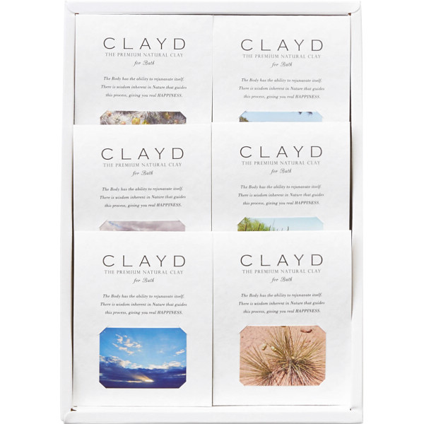 天然クレイの入浴料。 様々なシーンで一番人気のギフトボックス。 性別や年齢を問わず、「癒しのひとときをプレゼントする」のにぴったりなギフトです。 お肌のバリアや潤いを保ちながら、イオンの働きによって、気になる汚れや匂いのもとなどをしっかり吸着する*ため、妊婦さんやママのホームケア、生まれたての赤ちゃんの沐浴にも大人気です。 (*クレイの物質的・材質的性質に基づく物理的吸着による)