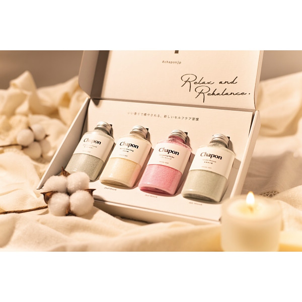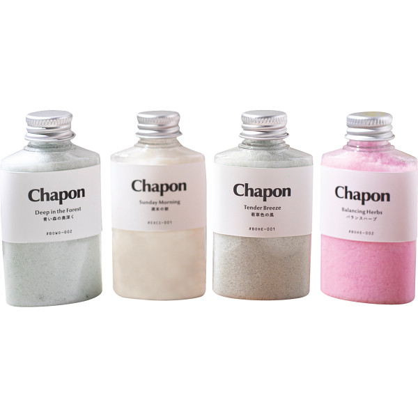 ●天然アロマバスソルト×4(青い森の奥深く・週末の朝・バランスハーブ・若草色の風)●内容量=60g(1本あたり) ●箱サイズ:24×16×3cm ●日本製