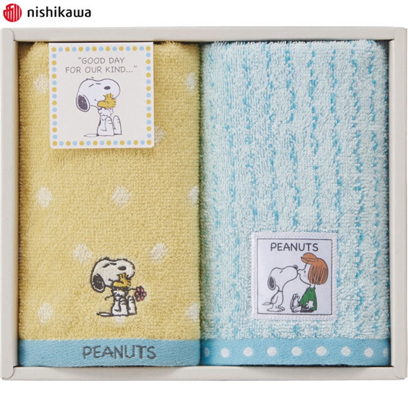 PEANUTSからハグをテーマに、スヌーピーが仲間に寄り添うシーンをモチーフにしました。 ハグするスヌーピーから優しさや思いやりが伝わるデザインです。 ドットとストライプのシンプルなパターンは子どもから大人まで使いやすく、内祝いにおすすめです。