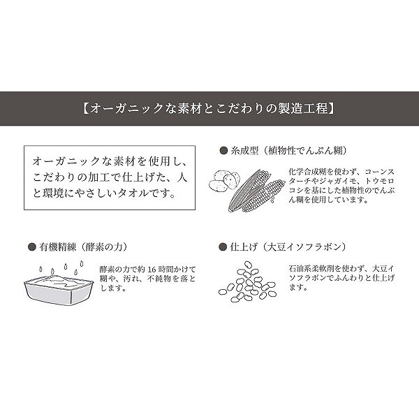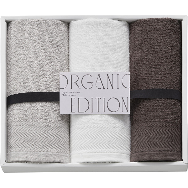 ●フェイスタオル(約29×75cm)×3枚 ●綿100%(パイル部=オーガニックコットン使用) ●箱サイズ:28.7×23.6×5cm ●日本製