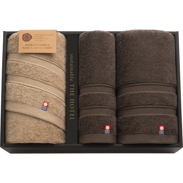 ●フェイスタオル(約33×80cm)×2枚・ゲストタオル(約33×35cm)×1枚 ●綿100% ●箱サイズ:38×26×8.8cm ●日本製