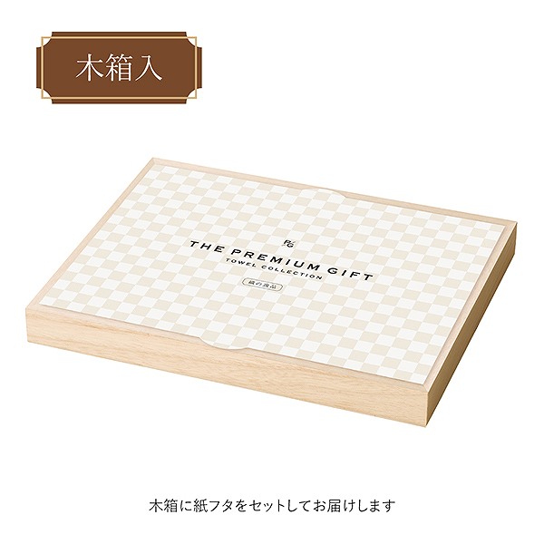 今治の自然を感じる色彩で丁寧に織り上げた情緒あふれる和更紗模様の今治タオル。 美しい今治タオルを木箱に詰め合わせた丁寧な贈りものです。