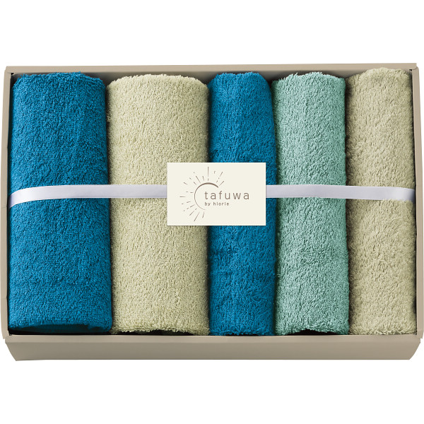 ●ミニバスタオル(約50×100cm)×2枚・フェイスタオル(約34×86cm)×3枚 ●綿100% ●箱サイズ:42×27×8.5cm ●日本製